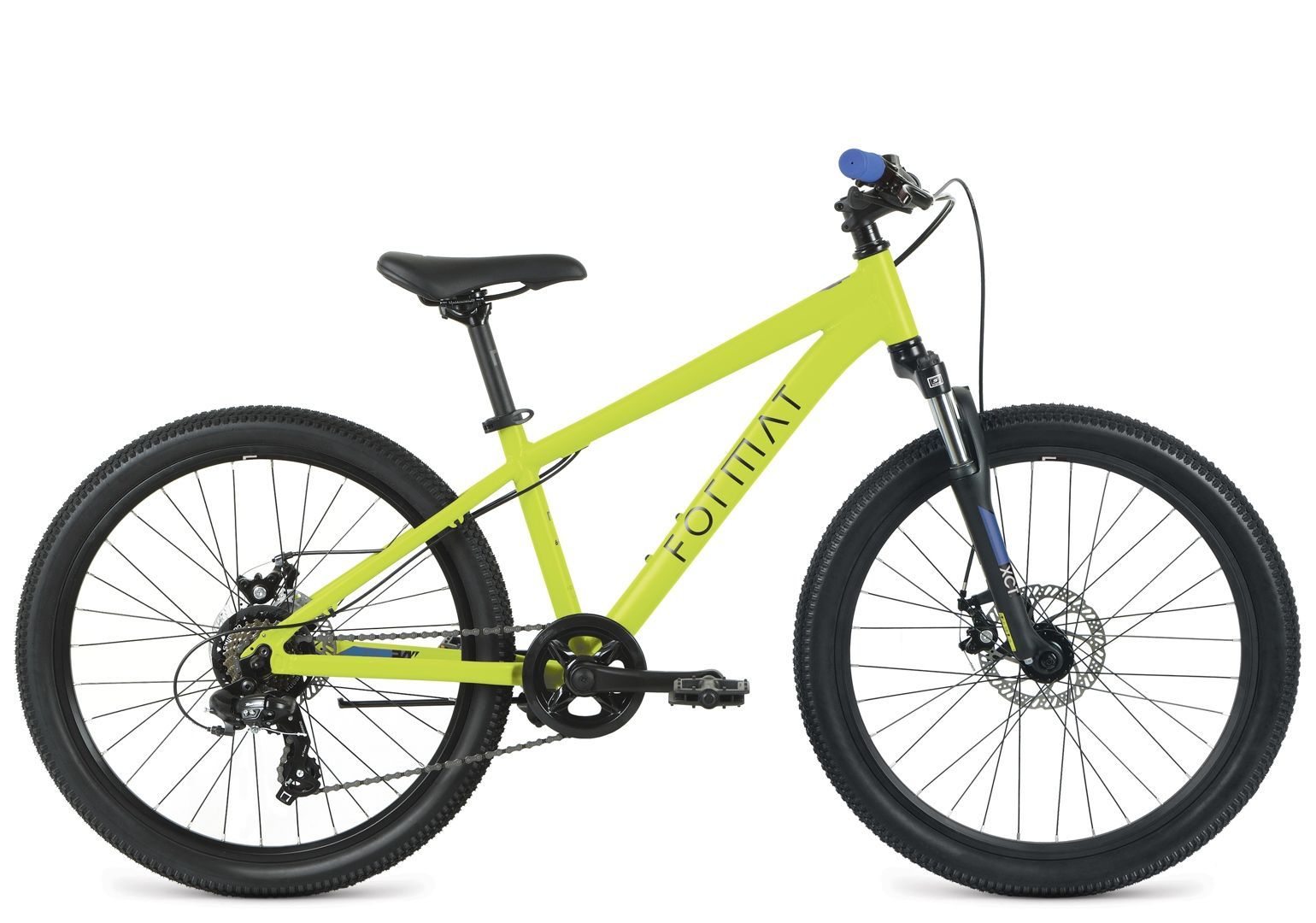 Бренд FORMAT Модель 6413 24 Год 2022 Серия 6413 Материал рамы Алюминий (Alloy) Рама/описание 24", Junior, алюминиевый сплав 6061 Тип вилки Амортизационная (пружина) Вилка/регулировки SR Suntour XCT DS 24" 50мм Диаметр колес 24" Обода Format Double Wall, 32Н, Schrader Покрышки Mitas Cheetah, 24x2.10" Тормоза Дисковые механические Тормоз Tektro M280 Уровень оборудования Любительский Шифтеры Sun Race DLM33 Переключатель задний Shimano TY300 Кассета Shimano TZ500, 14-28T, 7-speed Цепь KMC HV500 Каретка Kenli KL-08A, картриджная Шатуны Prowheel V32PP, 32T Количество скоростей 7 Руль Format Junior Рулевая колонка Kenli, внешние чашки, безрезьбовая, 1 1/8"x34x30 Вынос Format Junior Седло Format Junior Подседельный штырь Format Втулка передняя Format, 6 болтов, пром. подшипники Пол/возраст Унисекс Втулка задняя Format, 6 болтов, пром. подшипники Грипсы длина/тип Format Junior -